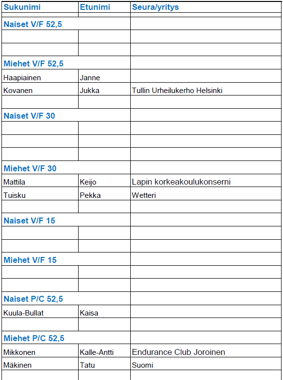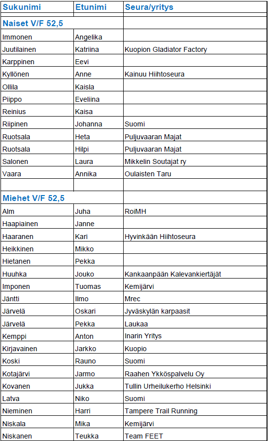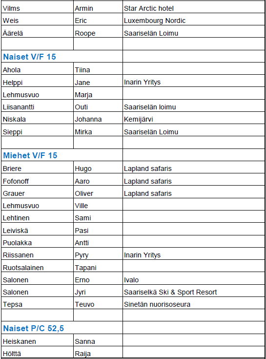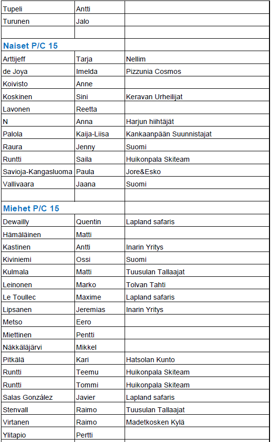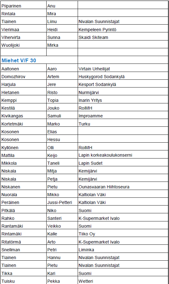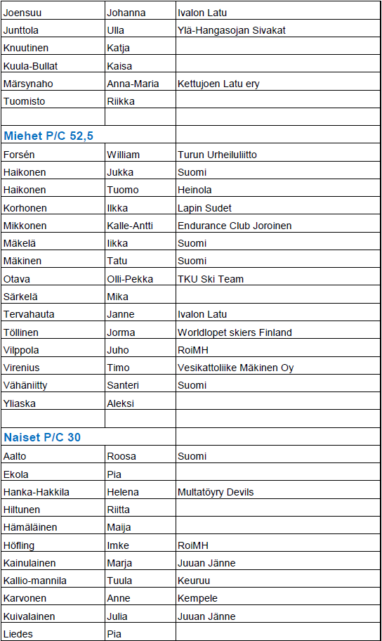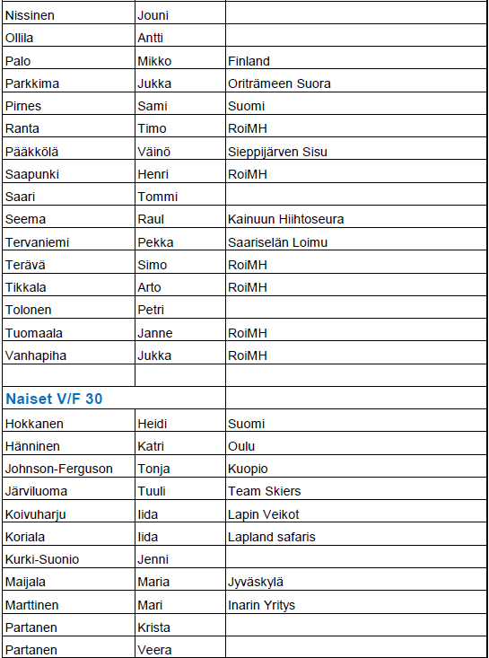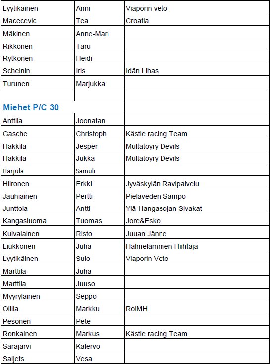 Mikäli nimesi puuttuu listalta, niin emme ole vielä saaneet maksusuoritustasi.
